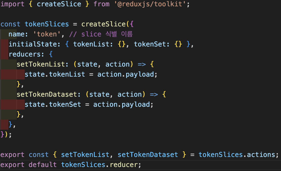 이렇게 만든 action을 export하고, slice도 export합니다.